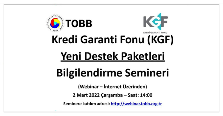 Türkiye Odalar ve Borsalar Birliği ile Kredi Garanti Fonu işbirliğinde gerçekleştirilecek olan seminerde Kredi Garanti Fonu’nun yeni destek paketleri olan “Yatırım Destek Paketi”, “İhracat Destek Paketi” ve “İşletme Harcamaları Destek Paketi” anlatılacak olup, seminer sonunda KOBİ’lerin konu hakkındaki soruları cevaplandırılacaktır.